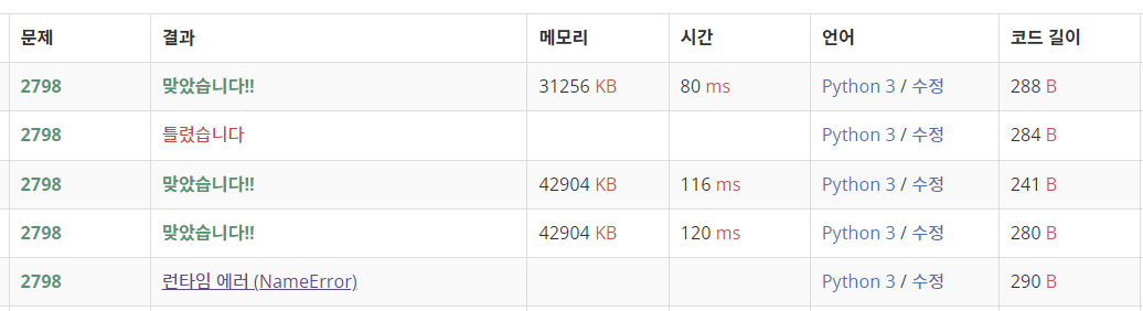 combinations 쓴 것 보다 for문 다중 중첩이 메모리와 시간을 덜 썼다.
