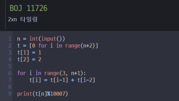 11726번: 2×n 타일링